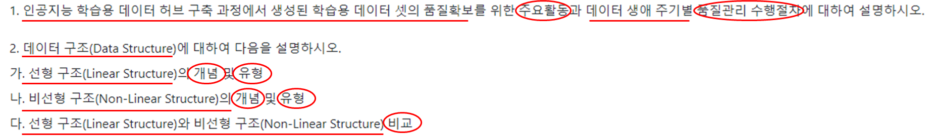 1교시형에서 2번, 5번과 같이 토픽명만 있는 경우에는 설명하라는 의미로 받아들이면 됩니다.