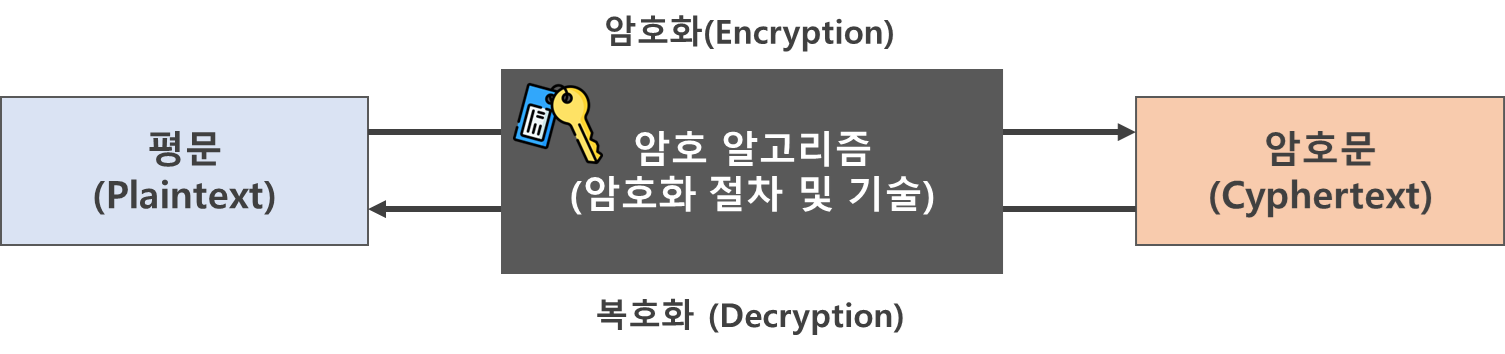 암호란 사람이 읽고 이해할 수 있는 평문(Plaintext)을 다른 사람이 읽거나 해독하지 못하도록 암호문(Ciphertext)으로 바꾸는 모든 원리, 수단 방법을 의미한다. 초기 암호의 목적은 기밀성에 있다. 패스워드를 암호로 인식하는 경우가 있지만 패스워드는 특정 시스템에 접근하기 위한 권한 여부를 검증하는 수단이라면 암호는 특정 정보를 다른 사람이 해독 불가능한 상태로 변형하는 것을 말한다. 이렇게 평문을 암호문으로 암호화할 때는 암호 알고리즘을 구현에 필요한 가변 정보인 키(Key)가 필요하고 일반적으로 암호화할 때의 키와 복호화할 때의 키가 필요하다.