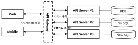 - API G/W는 API 통신 중계, 공통 기능 추상화 역할