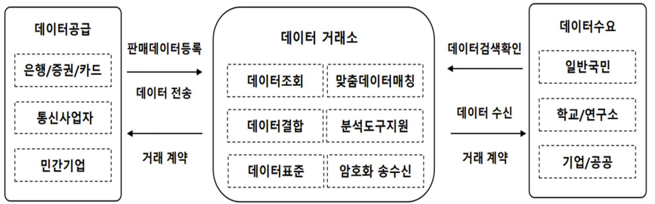 - 데이터 경제 활성화를 목적으로 데이터 공급자와 데이터 수요자 상호 매칭을 통한 거래 활성화 기여